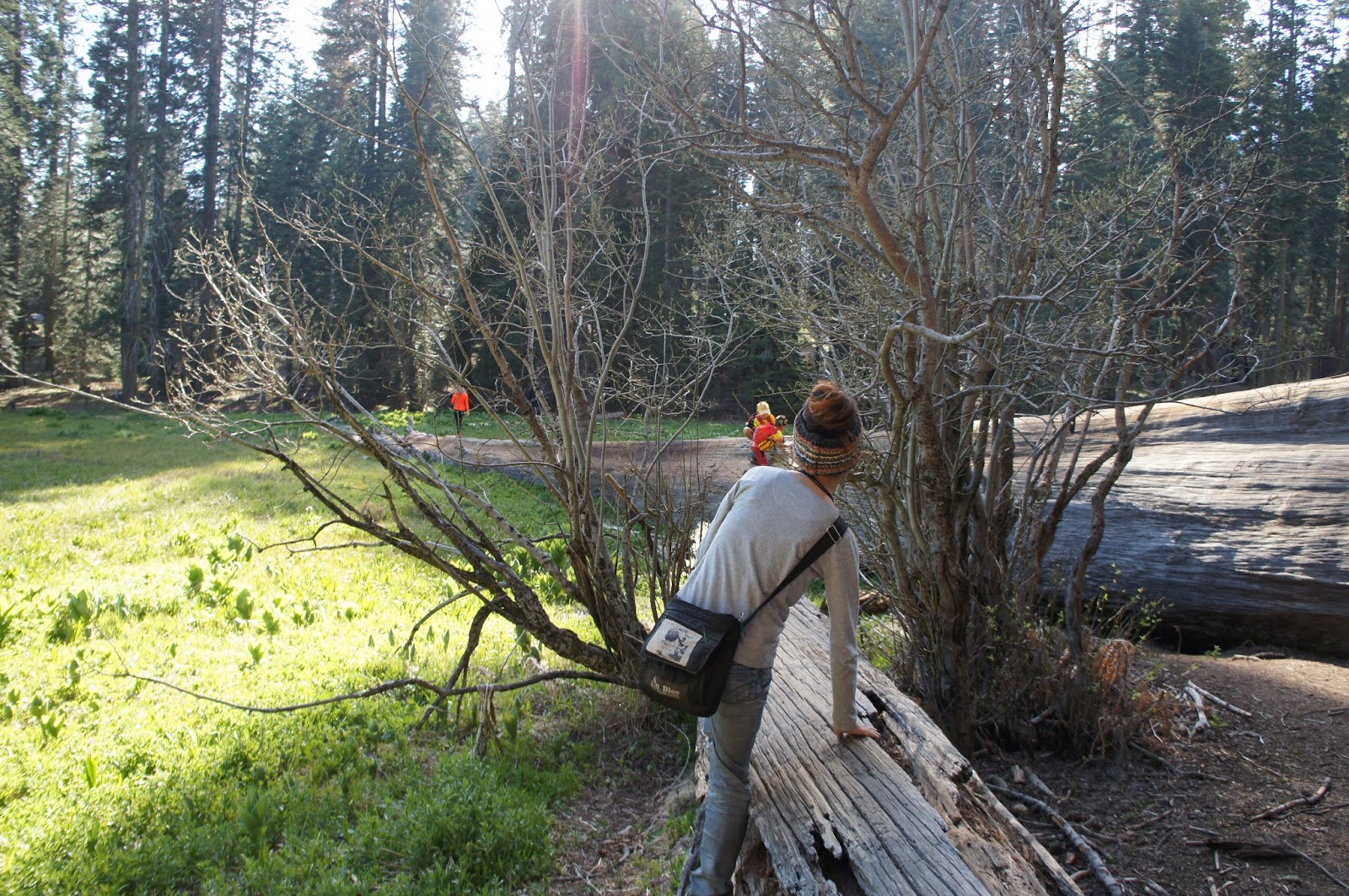 ジャイアント・セコイアの上をテクテク歩いて向こう側へ。約30~40分のハイキングでした。