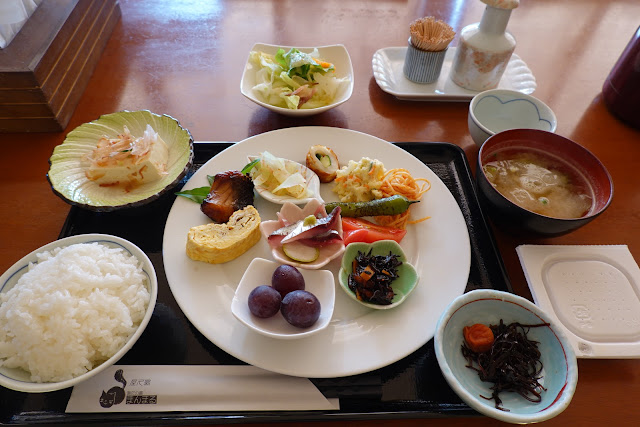 朝起きて、また爽快な青空のもと露天風呂に入ってから、朝食をいただきました。
